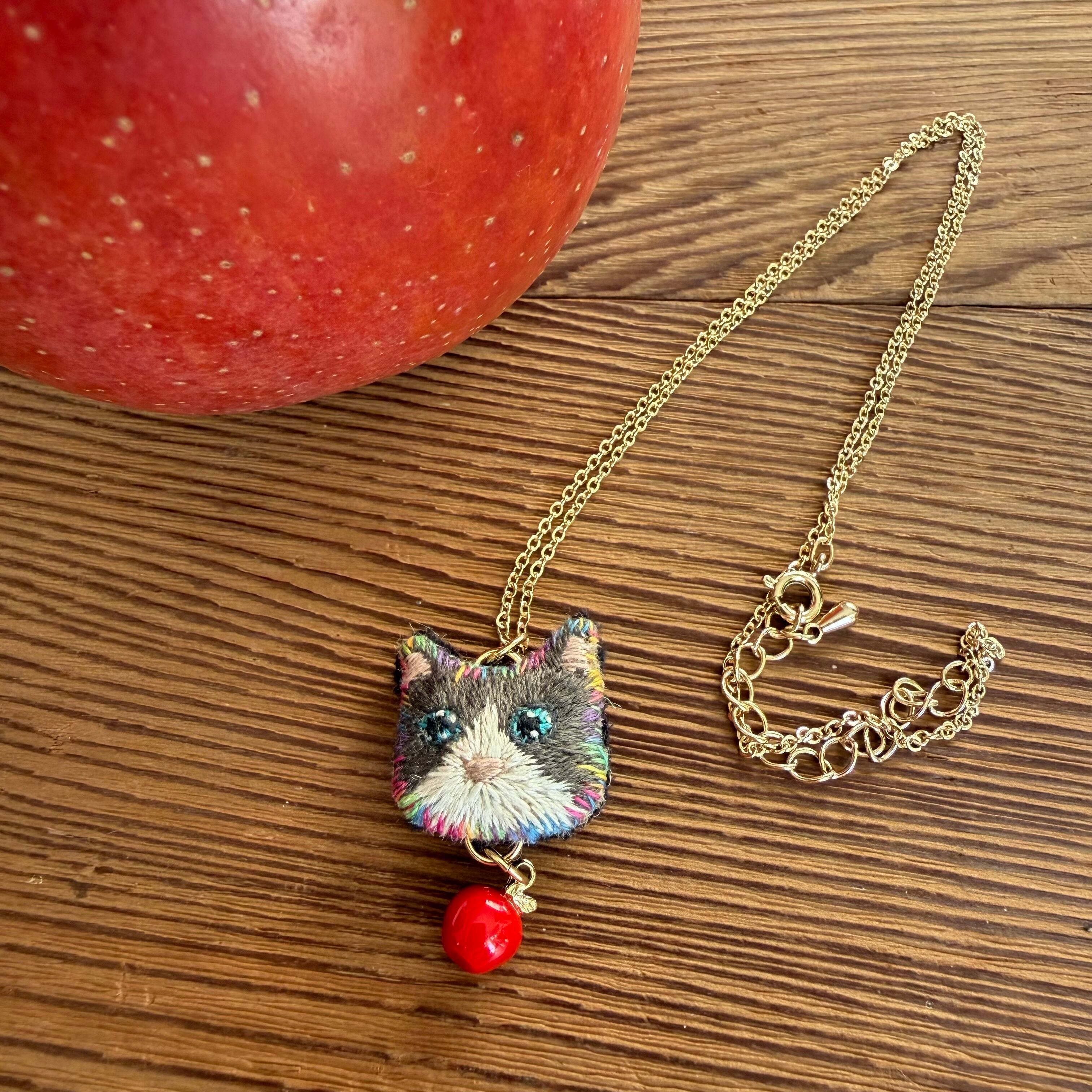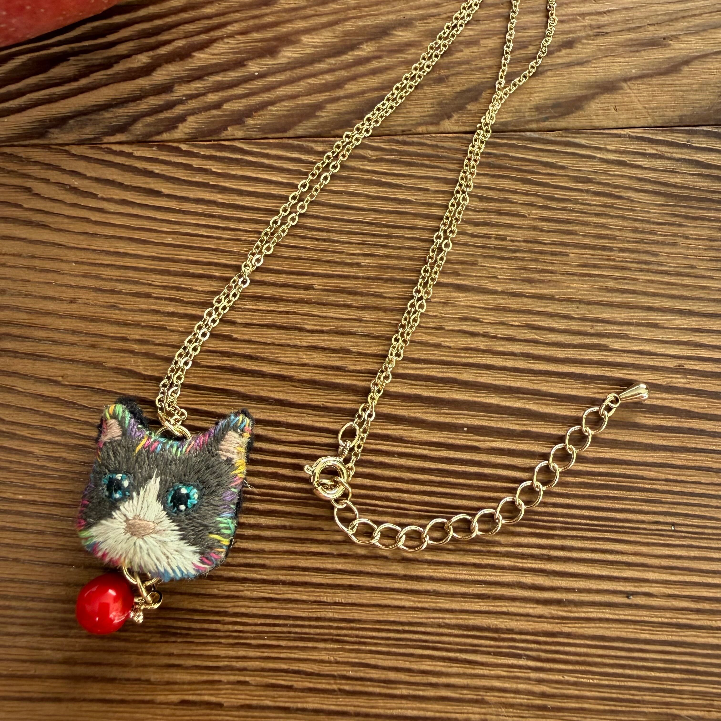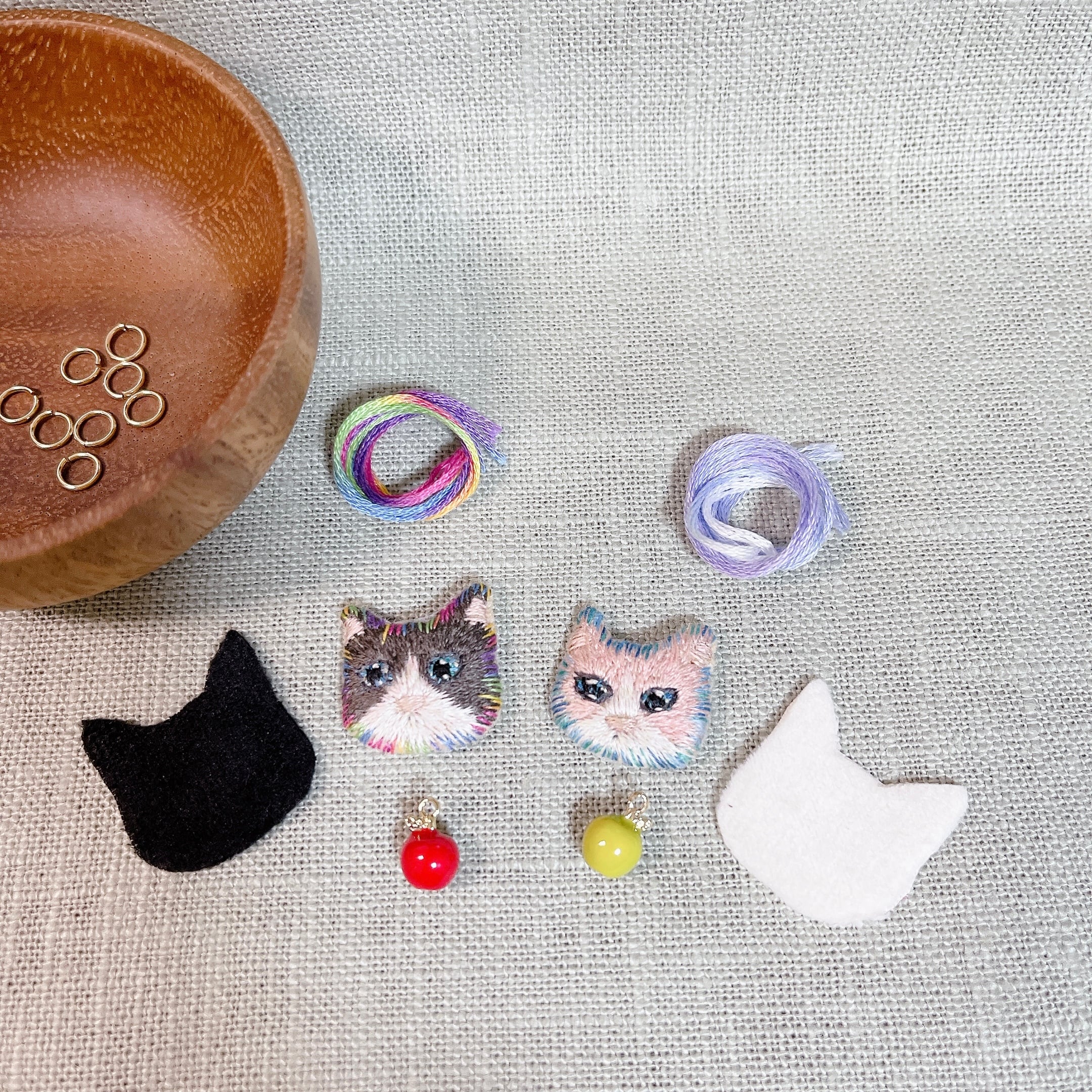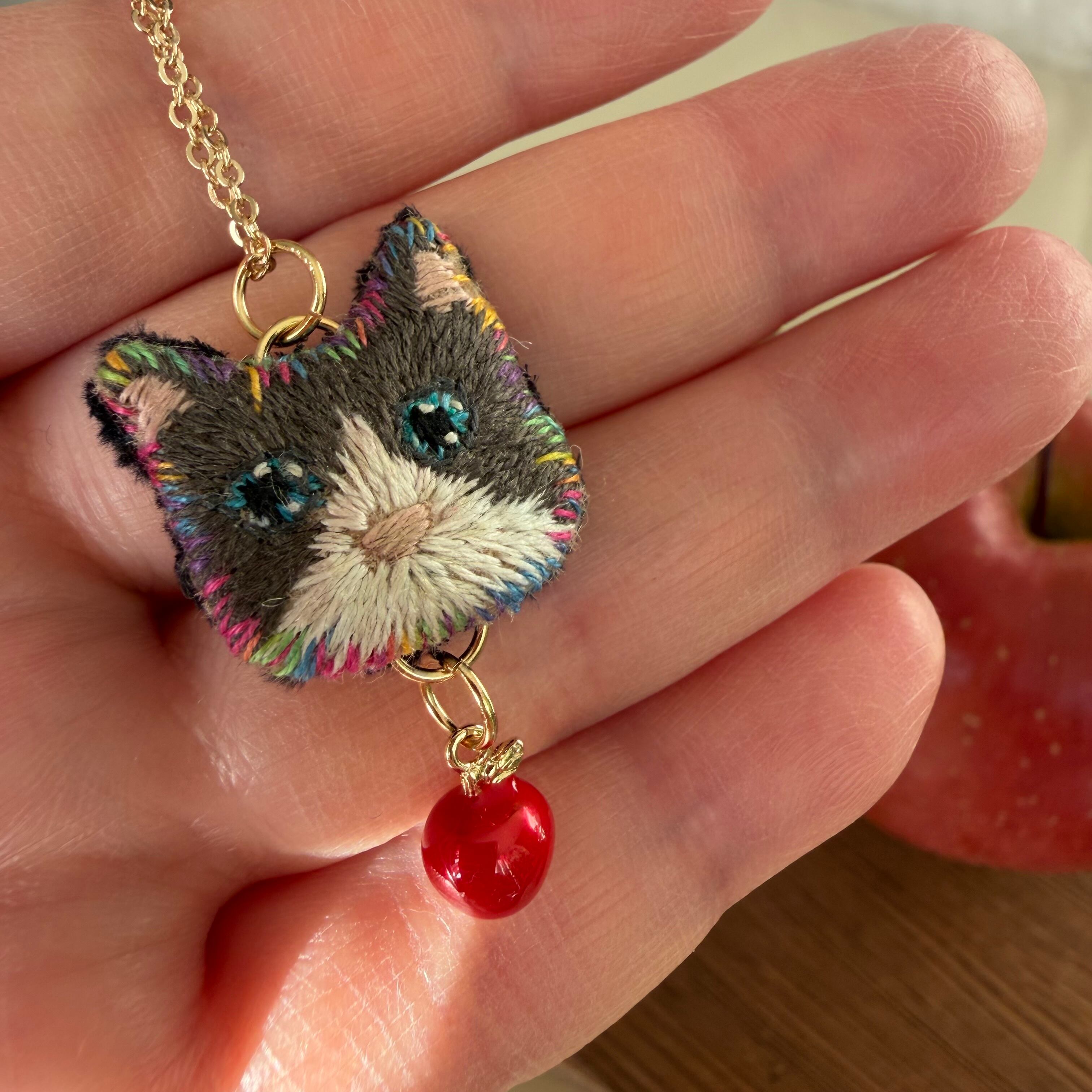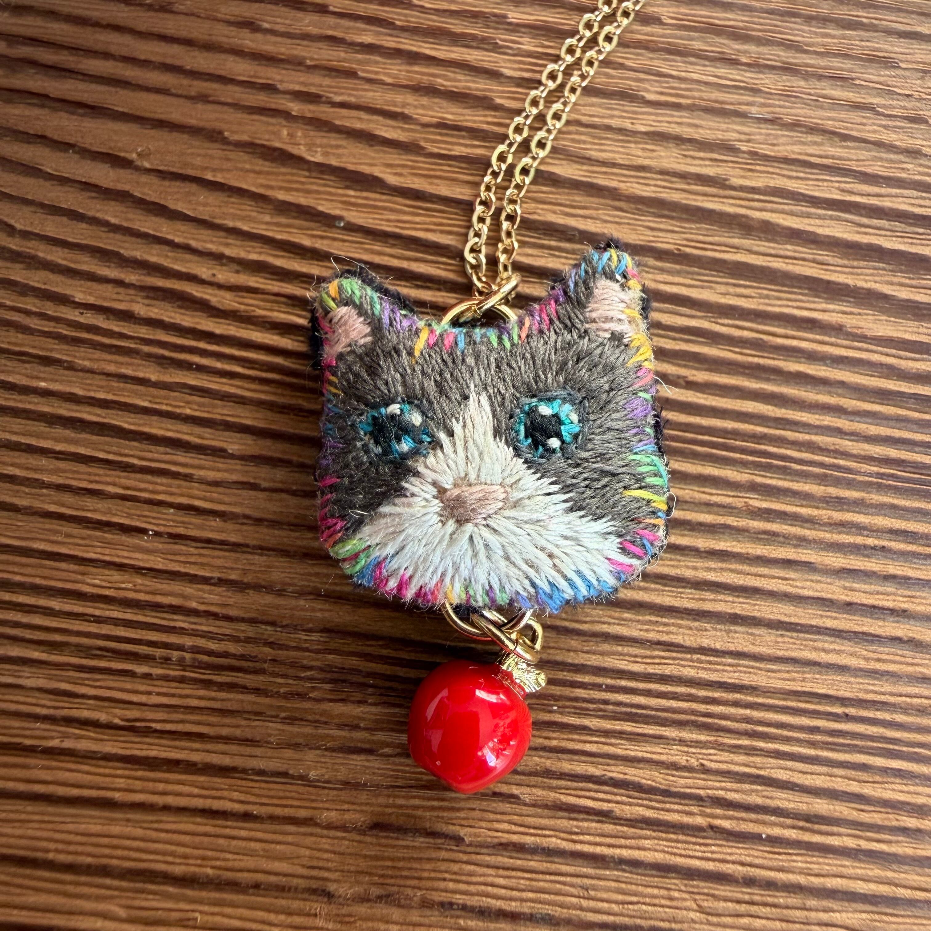 ねこの顔を刺繍しています