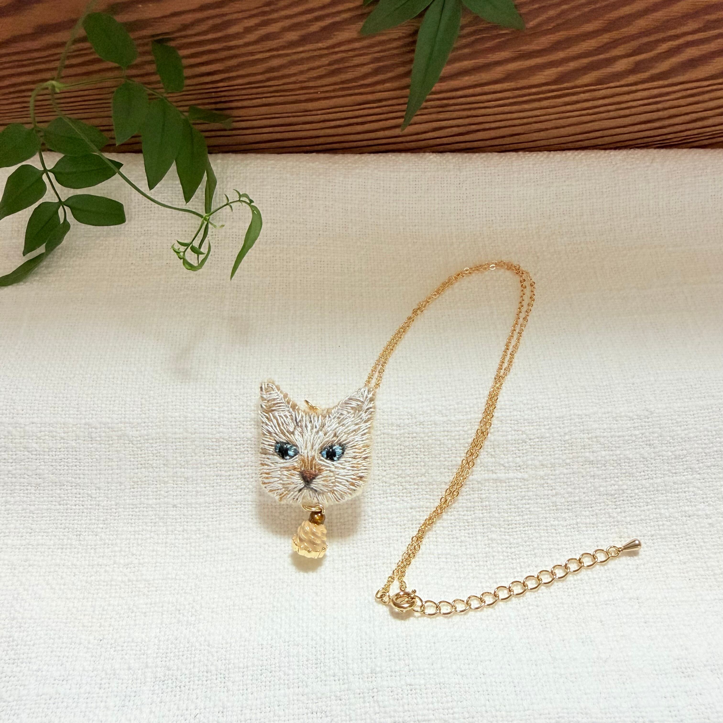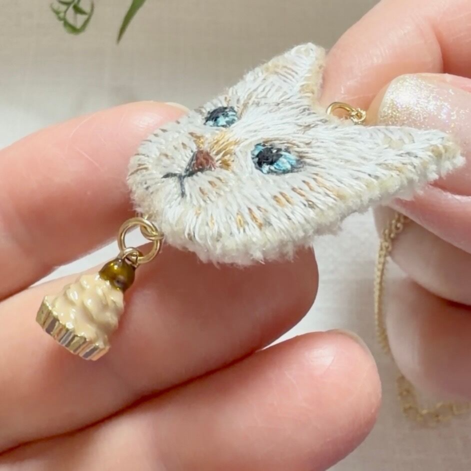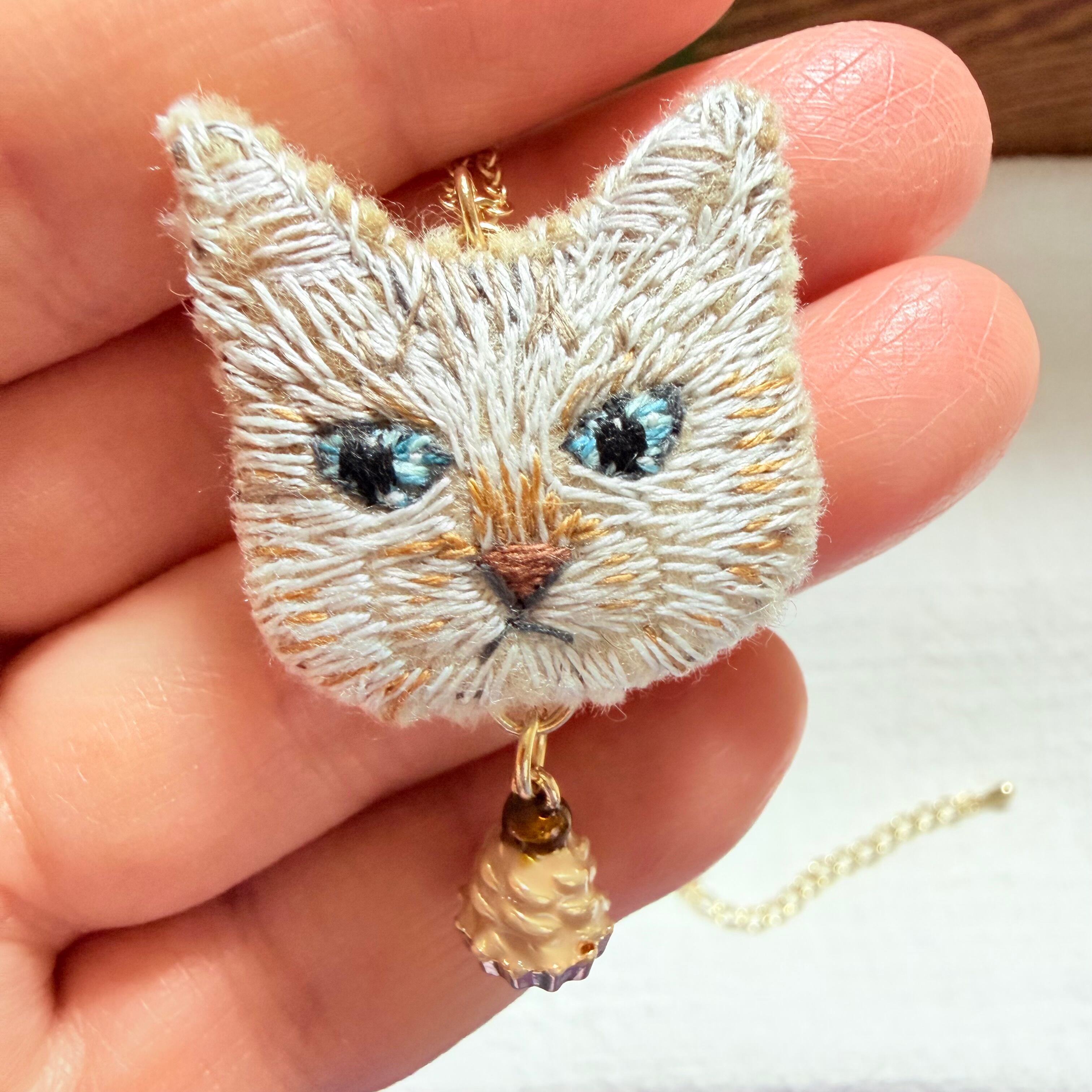 ちゃしろべーじゅ&モンブラン ねこのおかお刺繍ネックレス第二世代