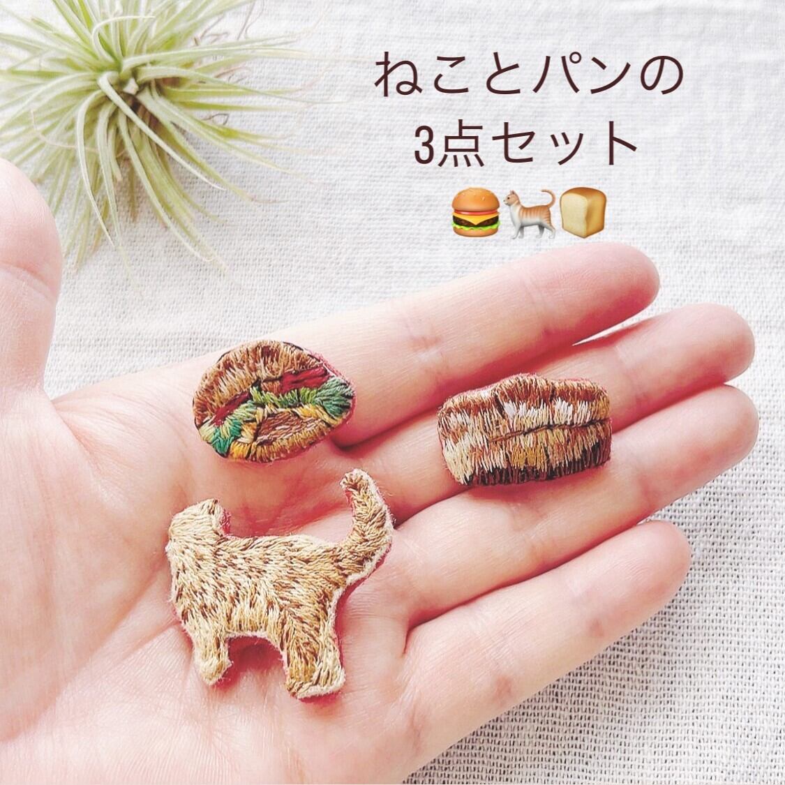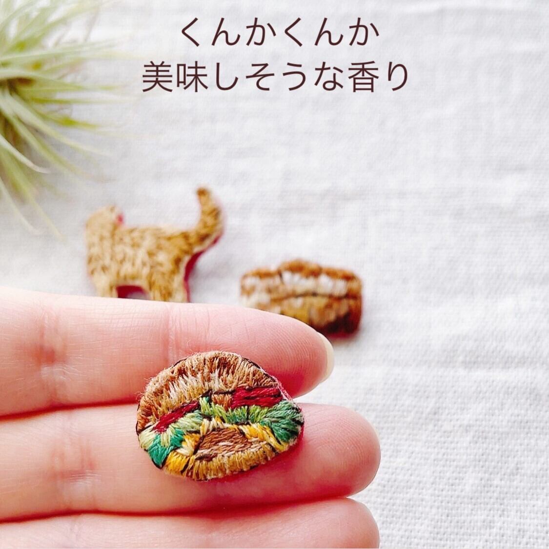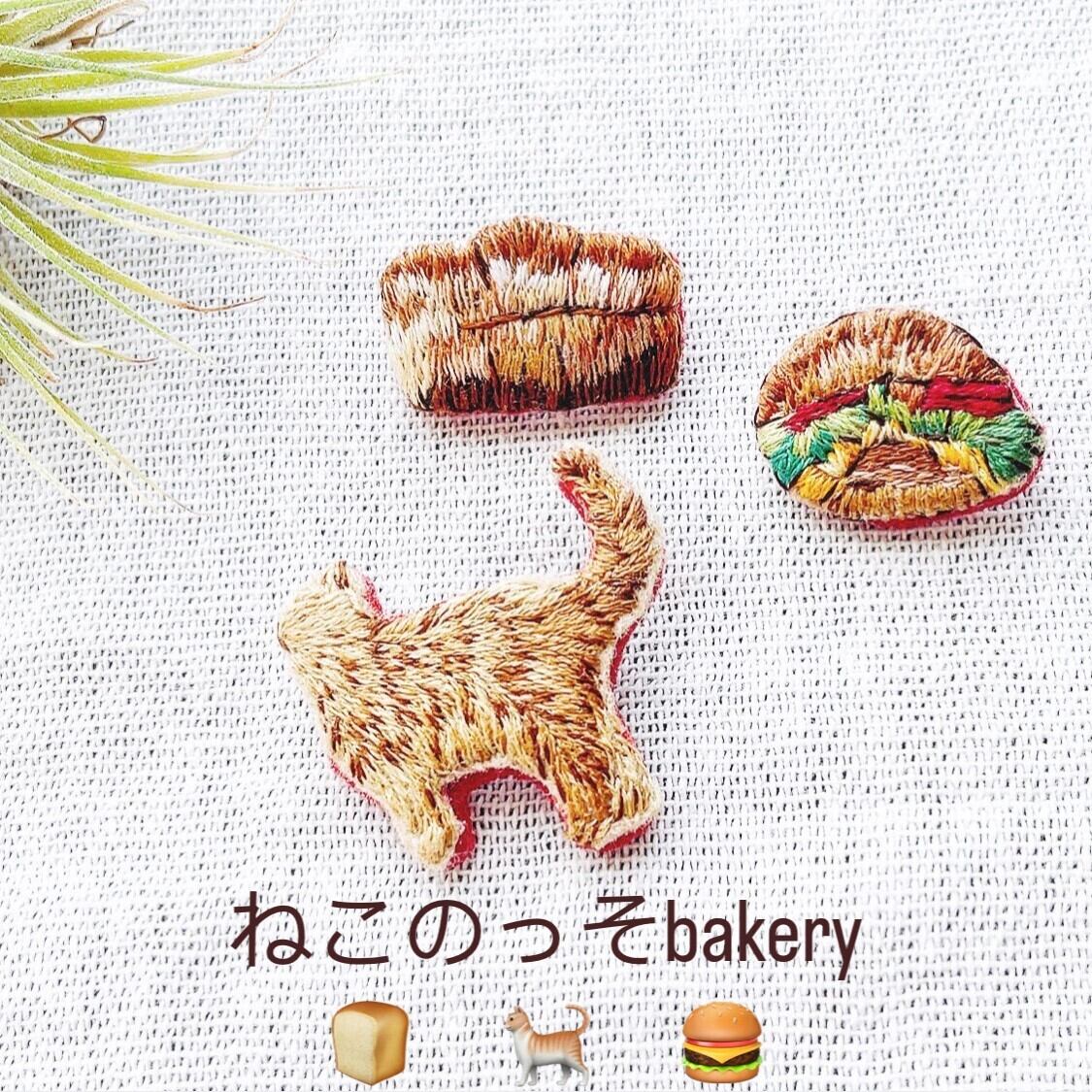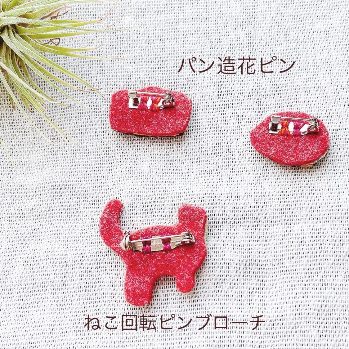 裏地は厚手のフェルト生地 手刺繍ブローチねことパン2個のセットです